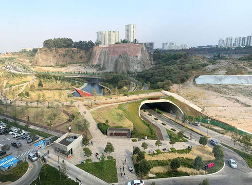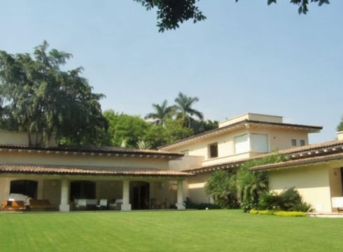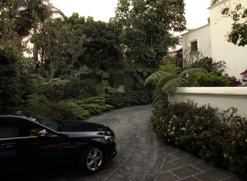La gran arcada abstracta diseñada por Ricardo Legorreta en avenida de los caballos enmarca la imponente mansión justo en la cima del