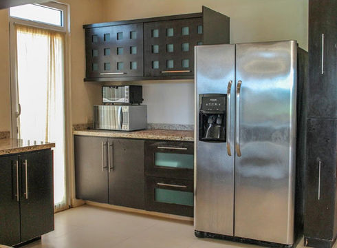 - Cocina: amplia y equipada, con cubiertas de cuarzo blanco nevado.